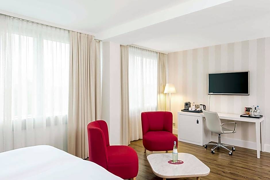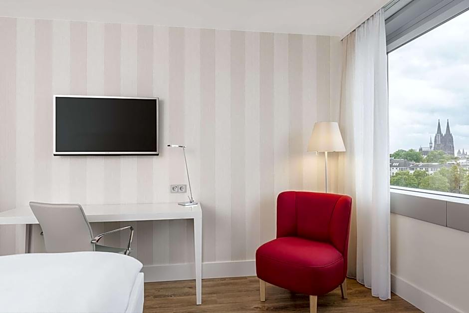 The Premium rooms offer more space. Stylish and spacious air-conditioned room featuring a desk, safe, flat-screen satellite TV and a private bathroom with bathtub, bidet, hairdryer and toiletries. This room offers extra space, tea/coffee facilities and a view of Cologne Cathedral.